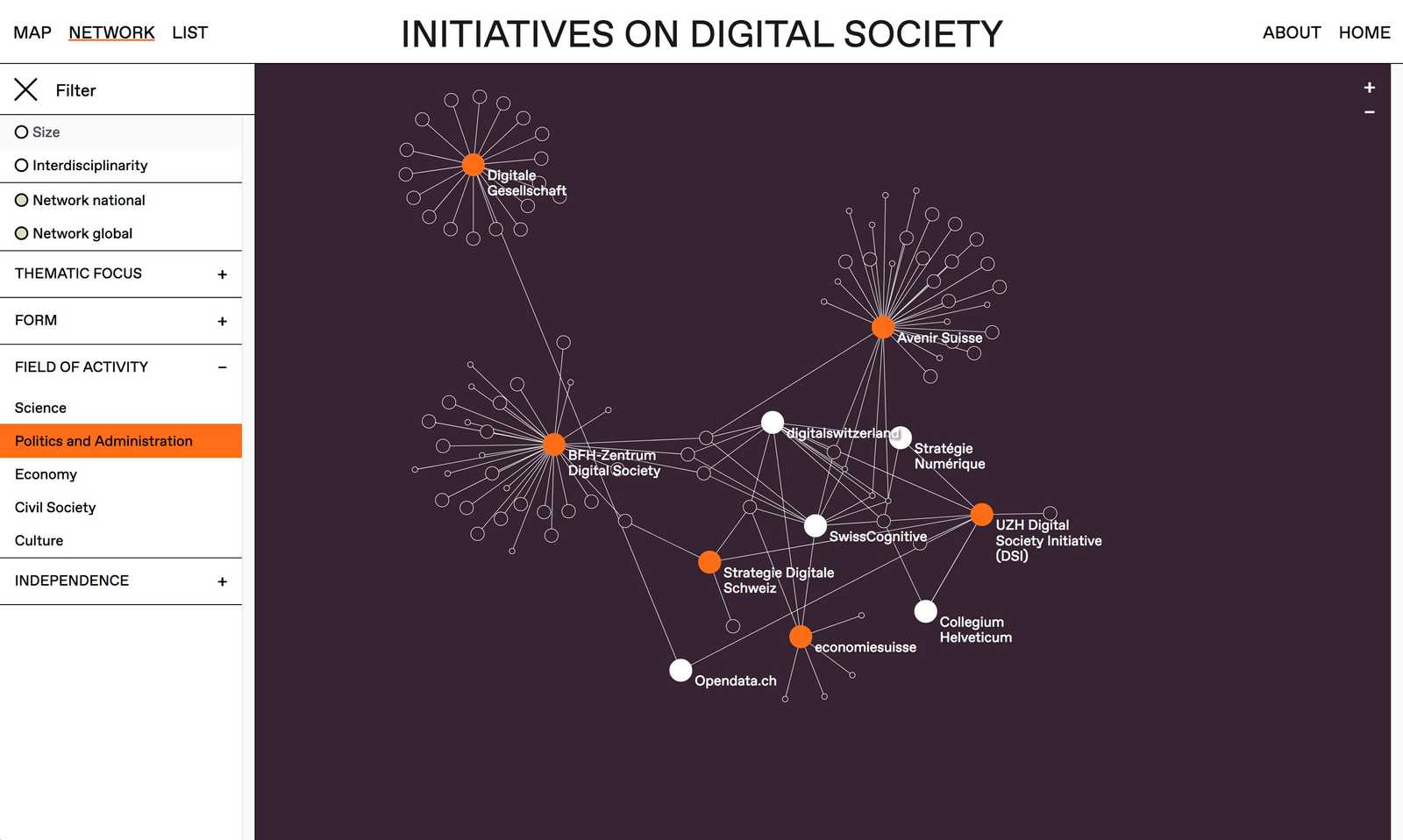 Die Website bietet einen Überblick über zentrale Initiativen, Themen und Netzwerke zu digitalen Gesellschaften.