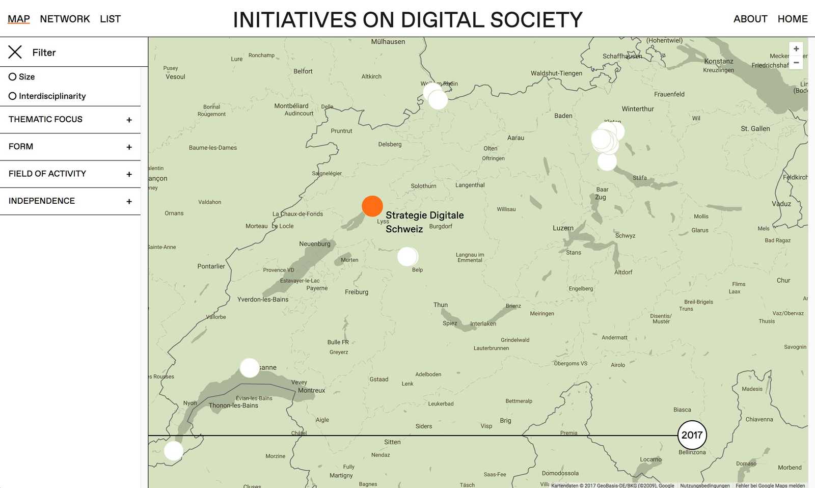 Die Daten der Forschung werden aus einer Spreadsheet-Tabelle dynamisch geladen und mithilfe der D3js-JavaScript Bibliothek visuell umgesetzt.